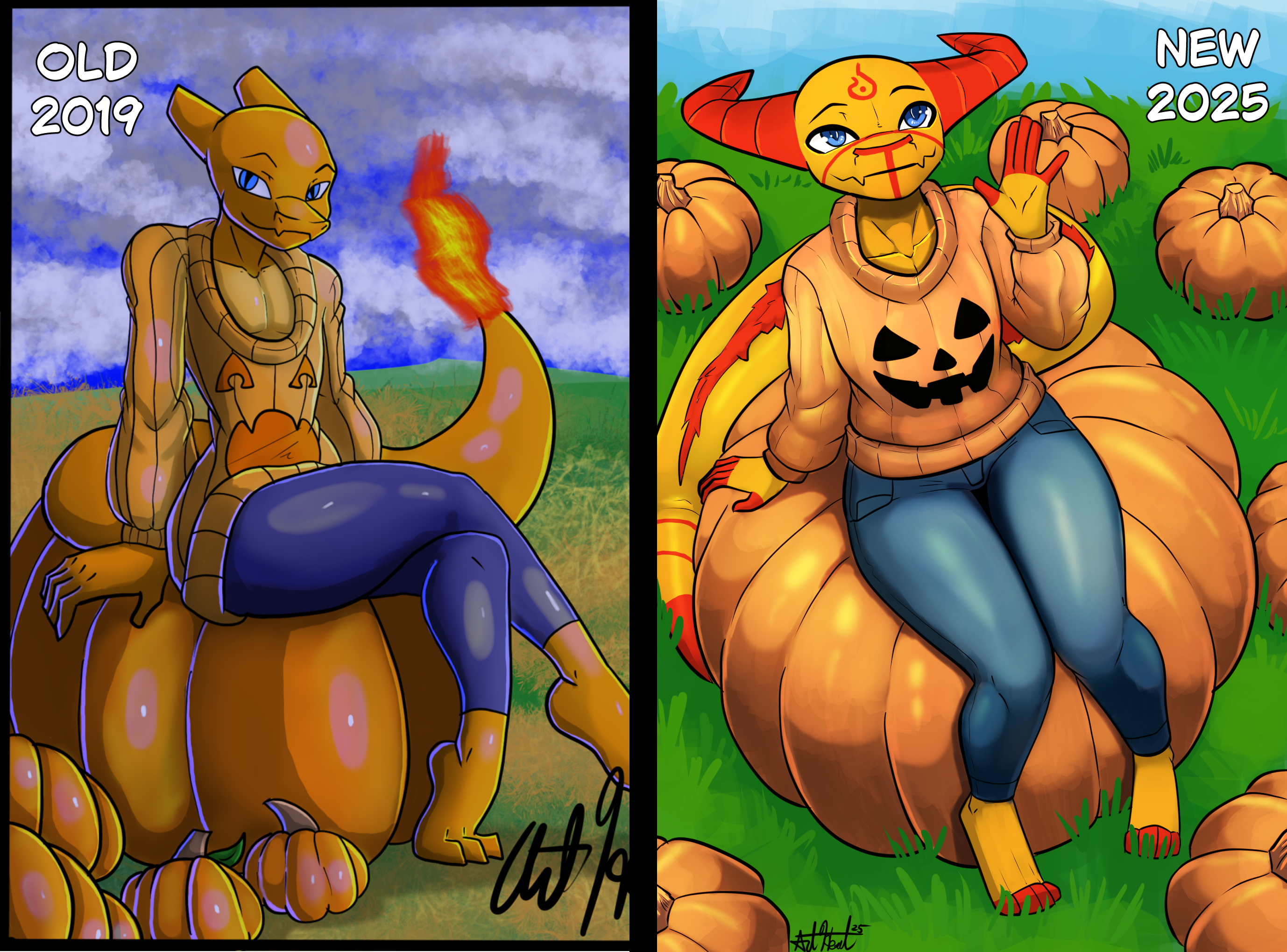 Then vs now - Naughty Sitting on a pumpkin