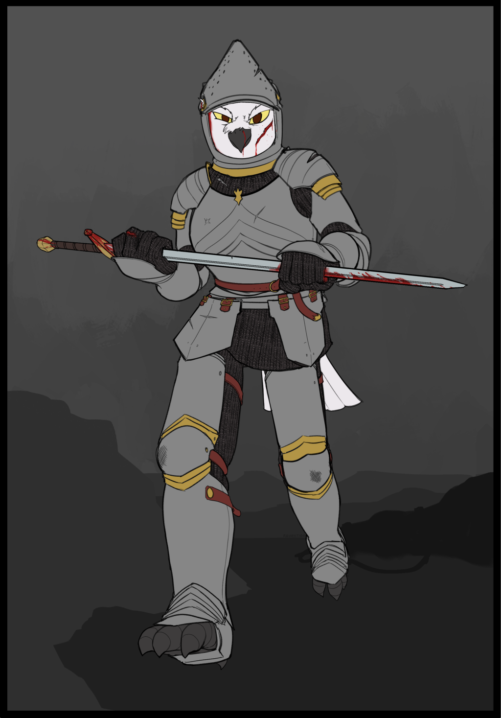 Commission for smowl on FA An owl knight ready to splatter a peasant.