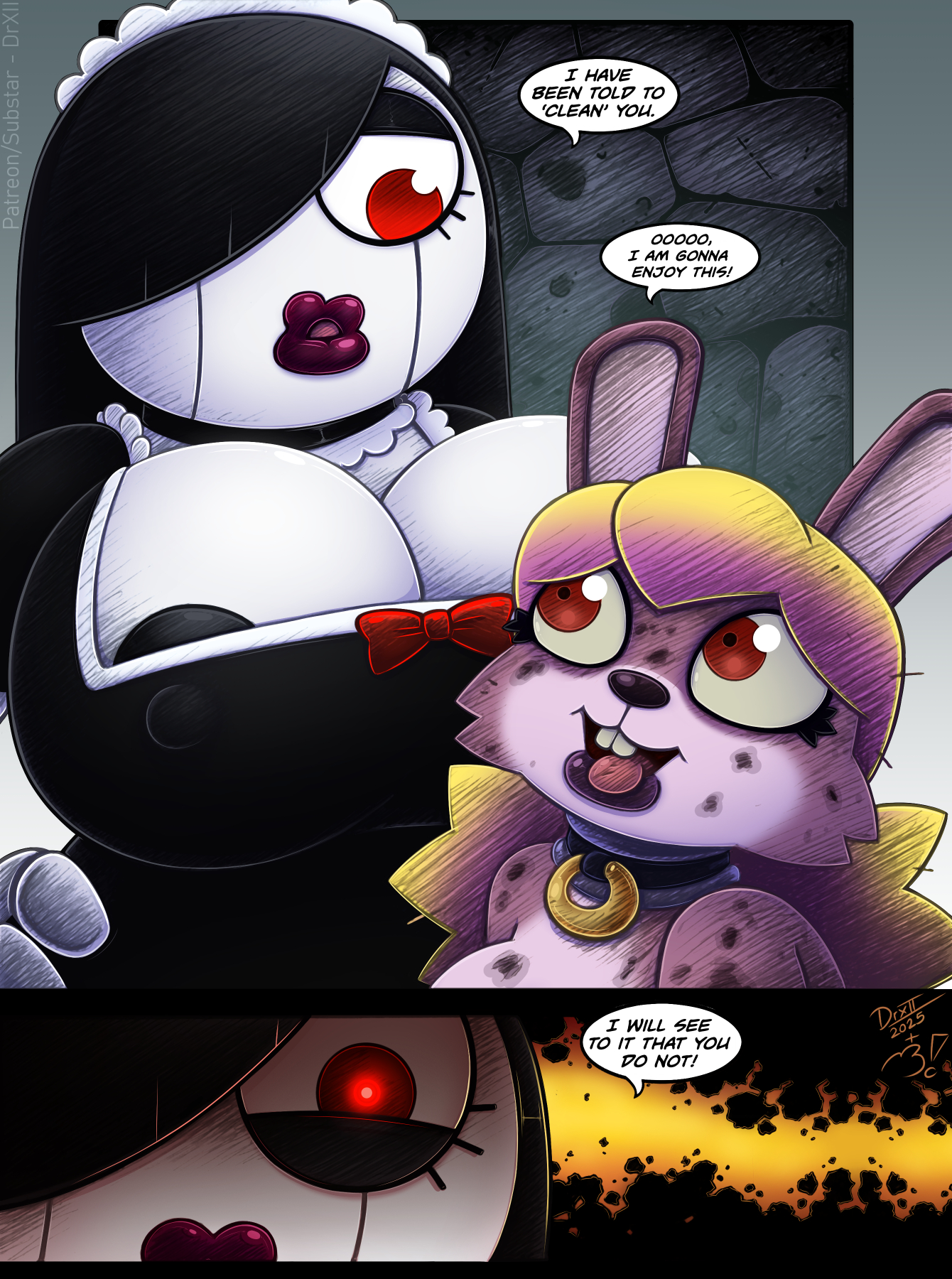 April was my birthday, TheB! drew Maidbot having been given a most unpleasant, greasy, smelly task. So I rendered it up :) Supporters get early access, full res PNG's, sketch and time-lapse. https://patreon.com/DrXII & https://subscribestar.adult/drxii