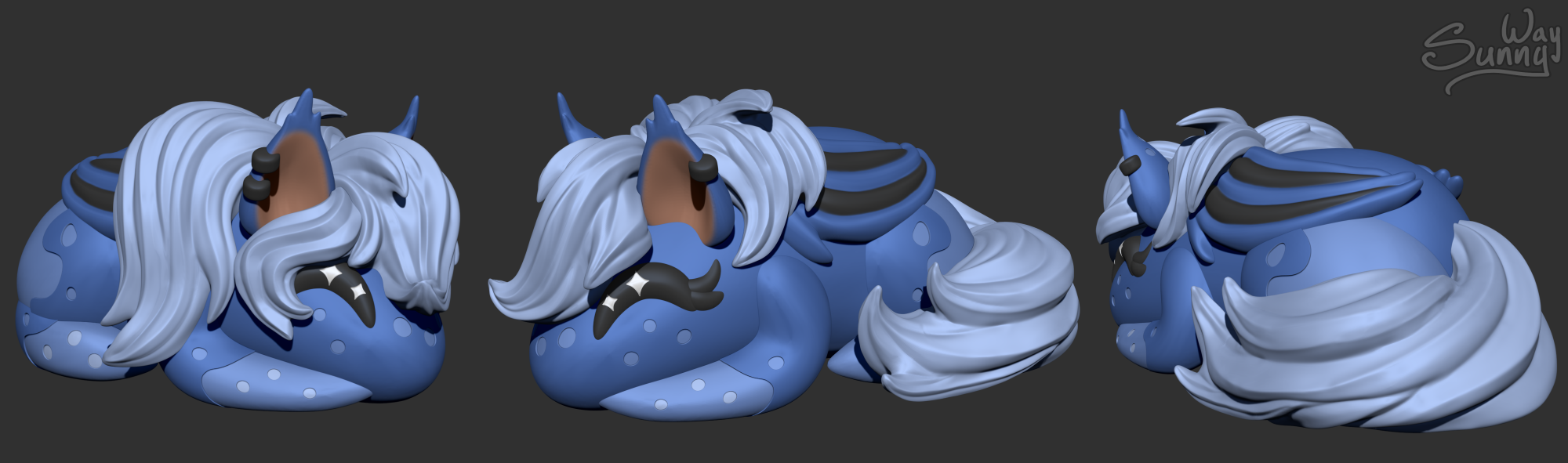 Original character! 3D model of figurine. Fifty colors of blue for the very first bat pony bun! And for the last bat pony bun