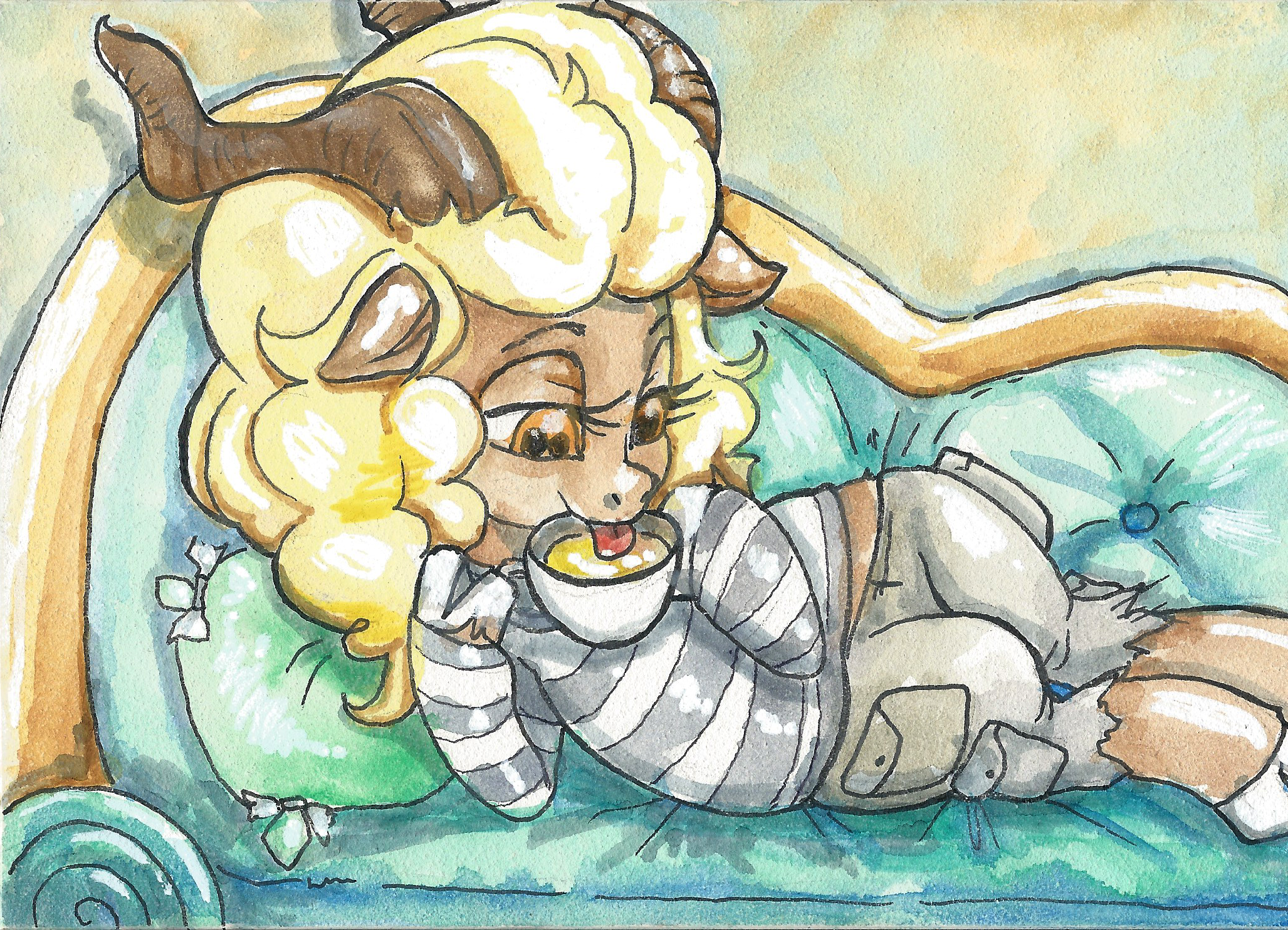 Ashtaspa drinking green tea