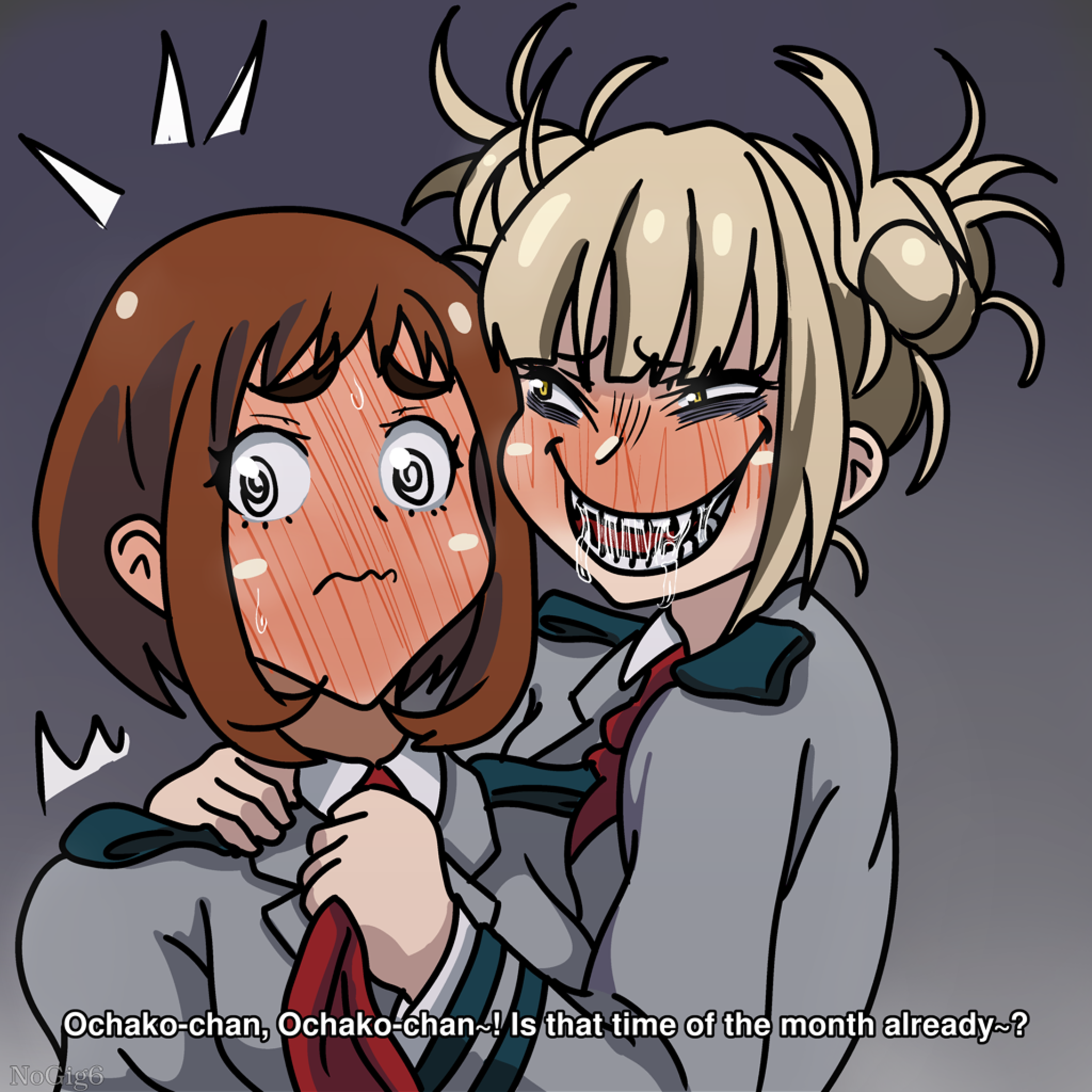 manga drawing illustration art anime_art my_art krita girl anime fanart anime-girls HimikoToga Toga-chan LeagueofVillains myheroacademia bokunohero トガヒミコ ヴィラン連合 ヒロアカ 僕のヒーローアカデミア 渡我被身子 トガちゃん 麗日お茶子 OchacoUraraka お茶子ちゃん