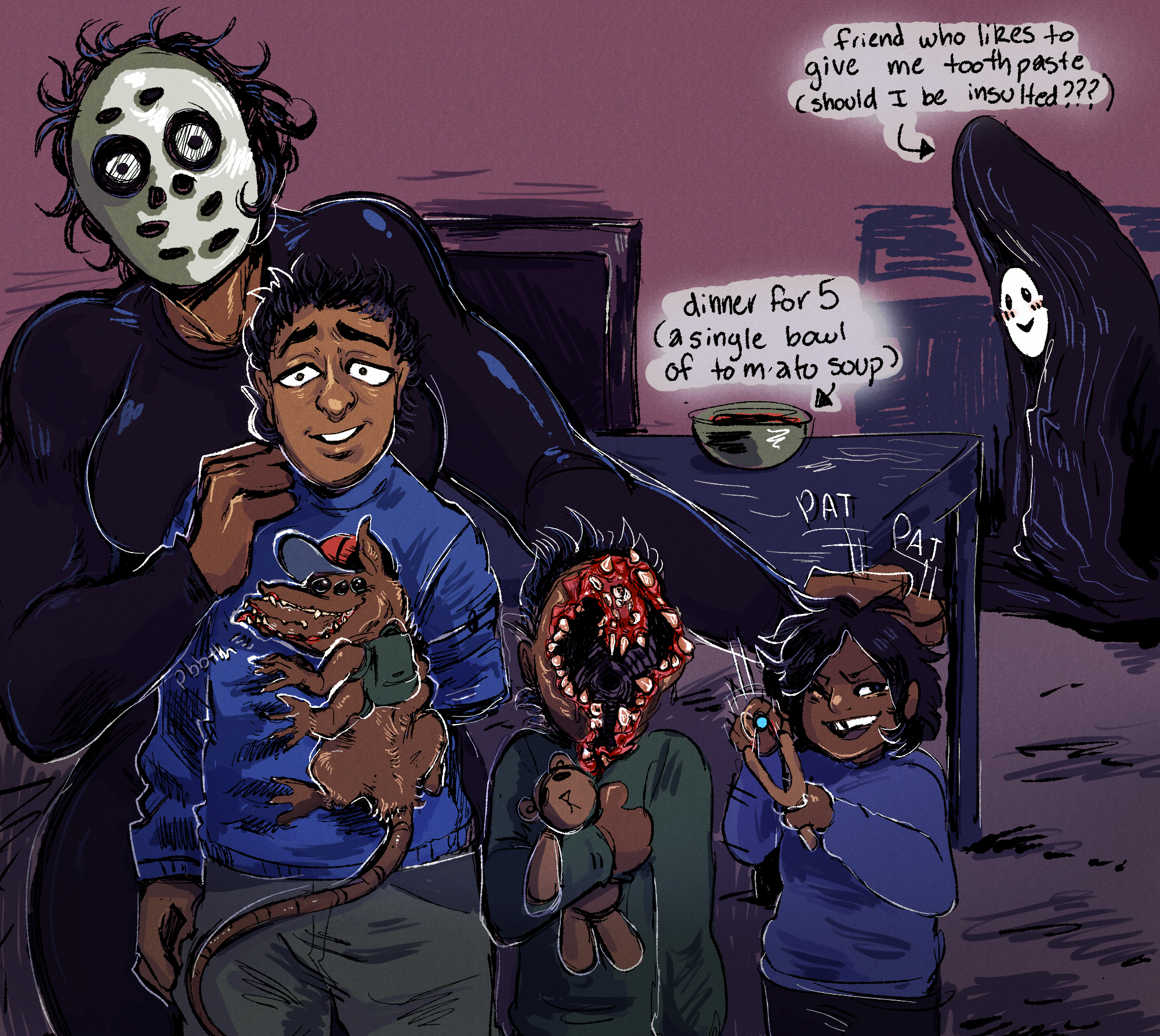 Family photo with my giant murderous wife and our three adopted children