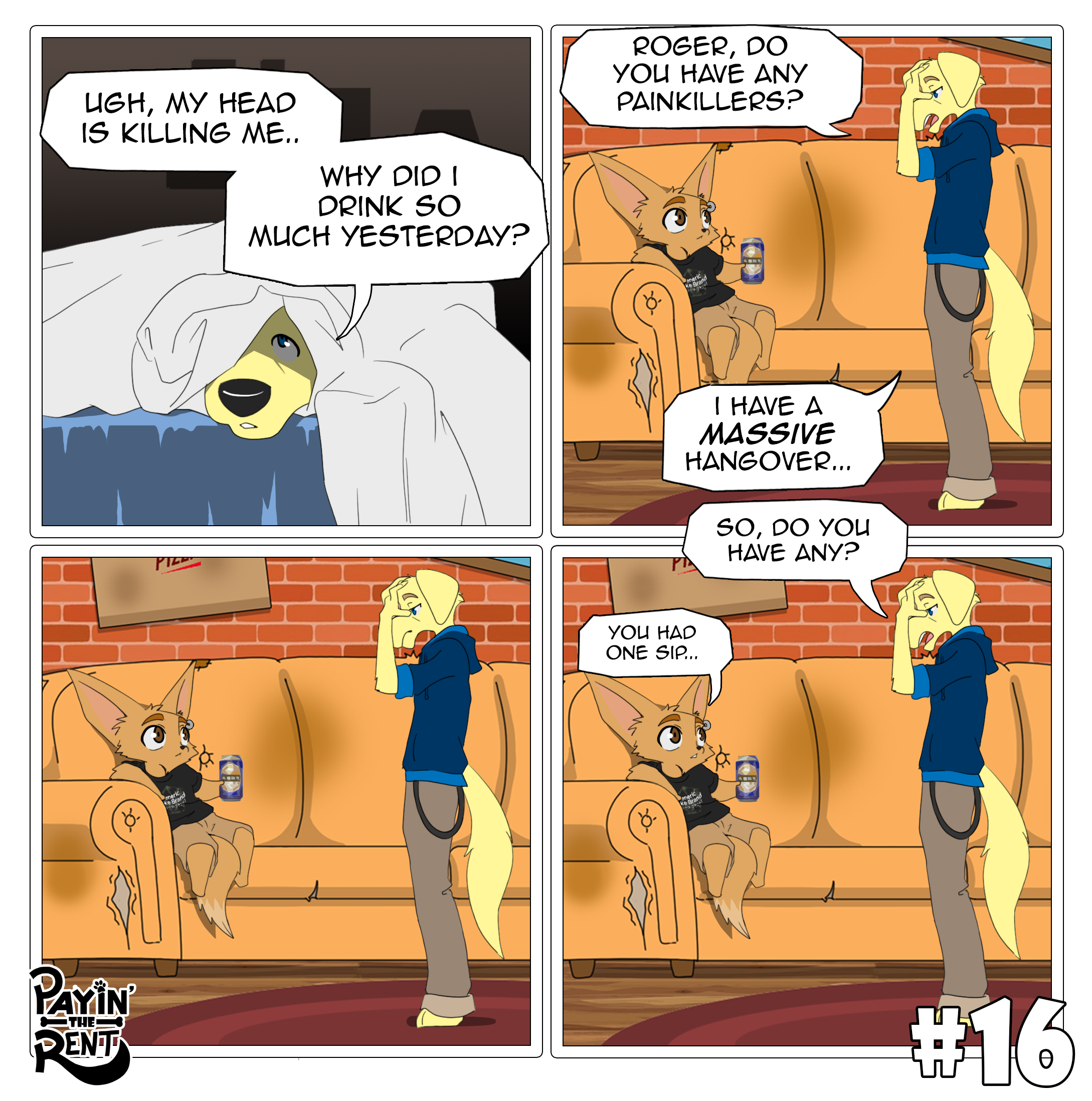 Payin’ the Rent is a slice-of-life comedy comic following the chaotic misadventures of Roger, a foul-mouthed, laid-back fennec fox, and Ben, his nerdy, optimistic Labrador roommate. The two live together in a cramped apartment where every day spirals into ridiculous situations.