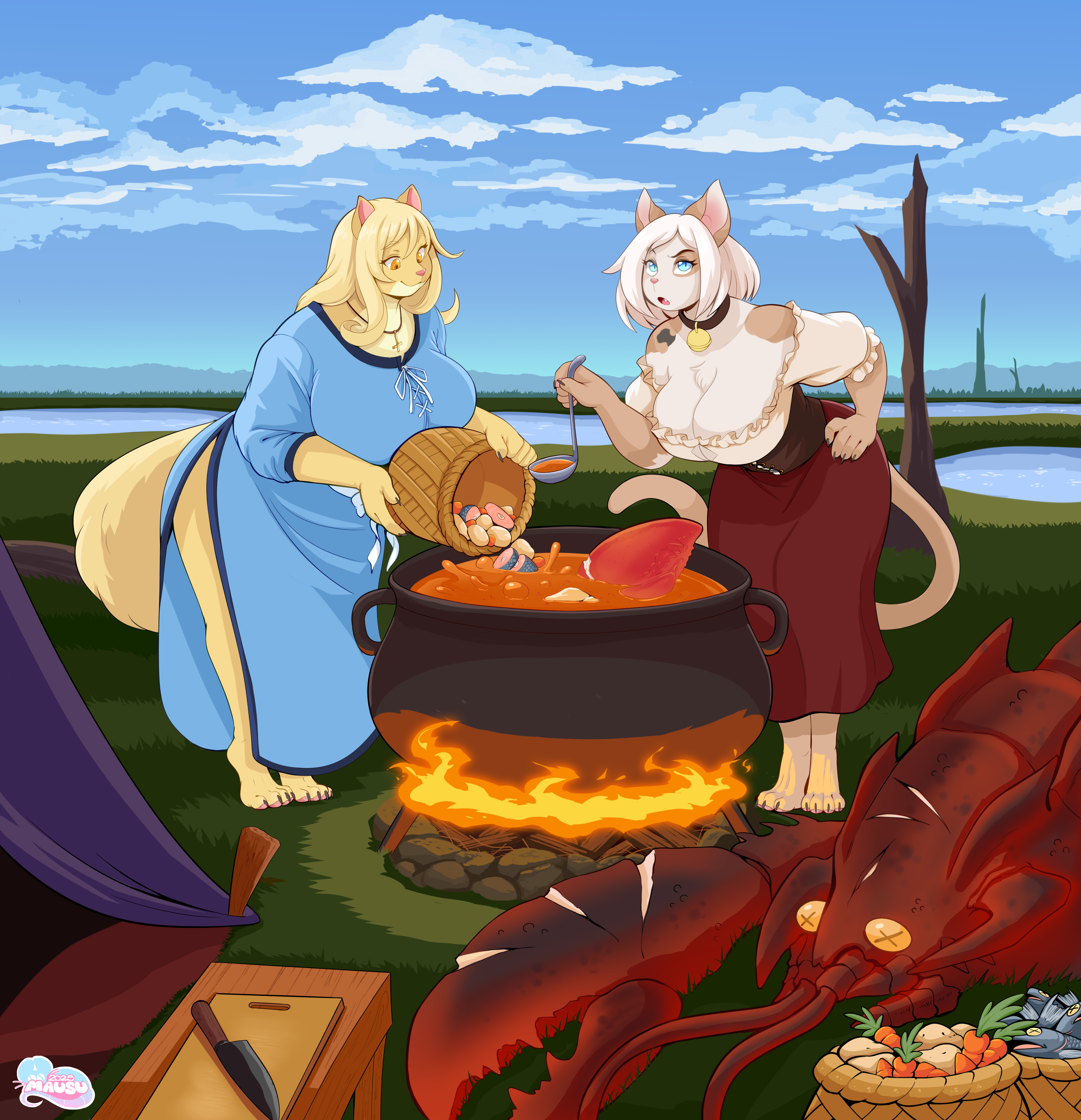 His adventuring gals Maple(Right) and Arianna(Left) fixing up a fine stew of their recent hunt!