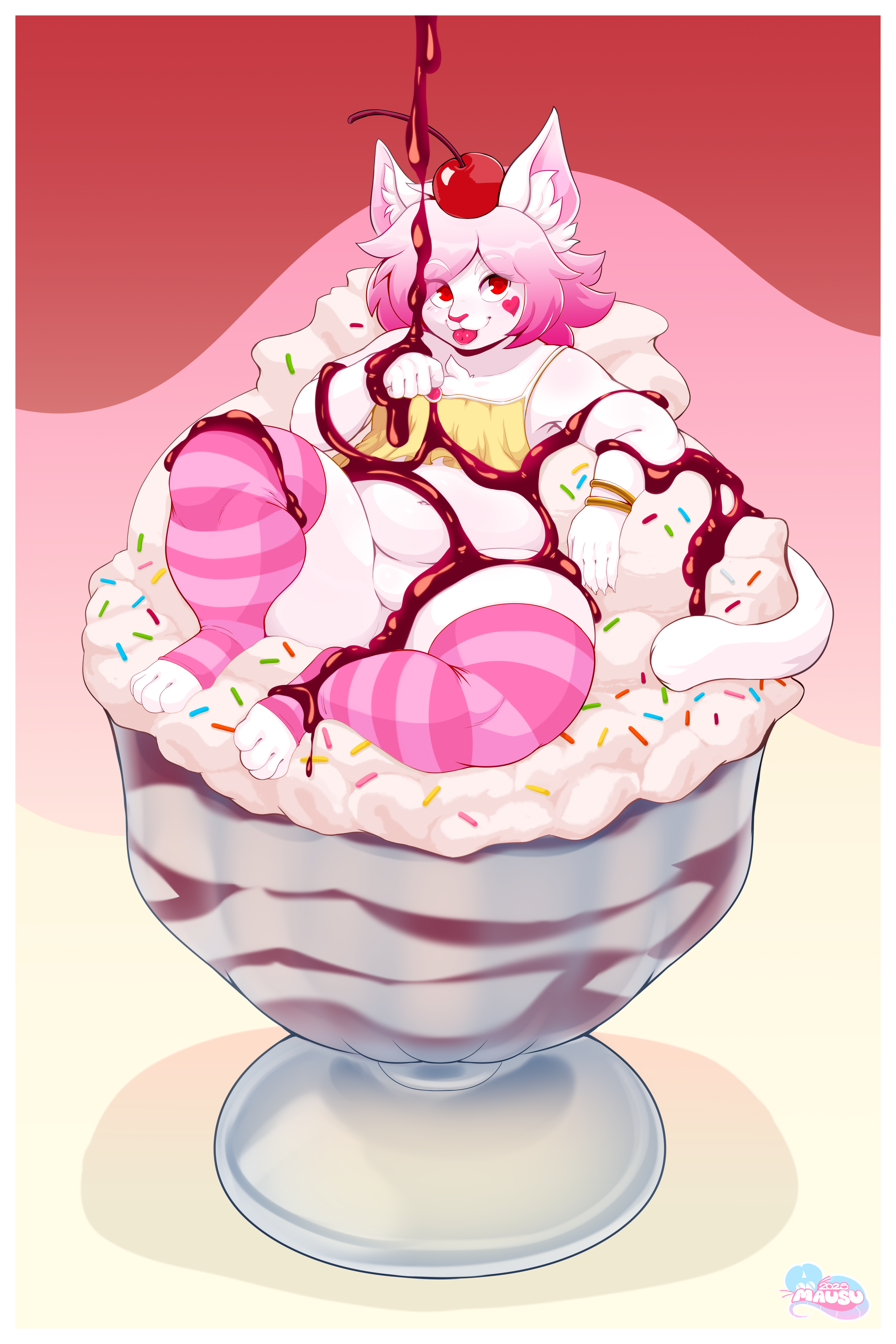 Cel shade comm done for CherryPopsyCat of their Abbey lounging in a nice big sweet!