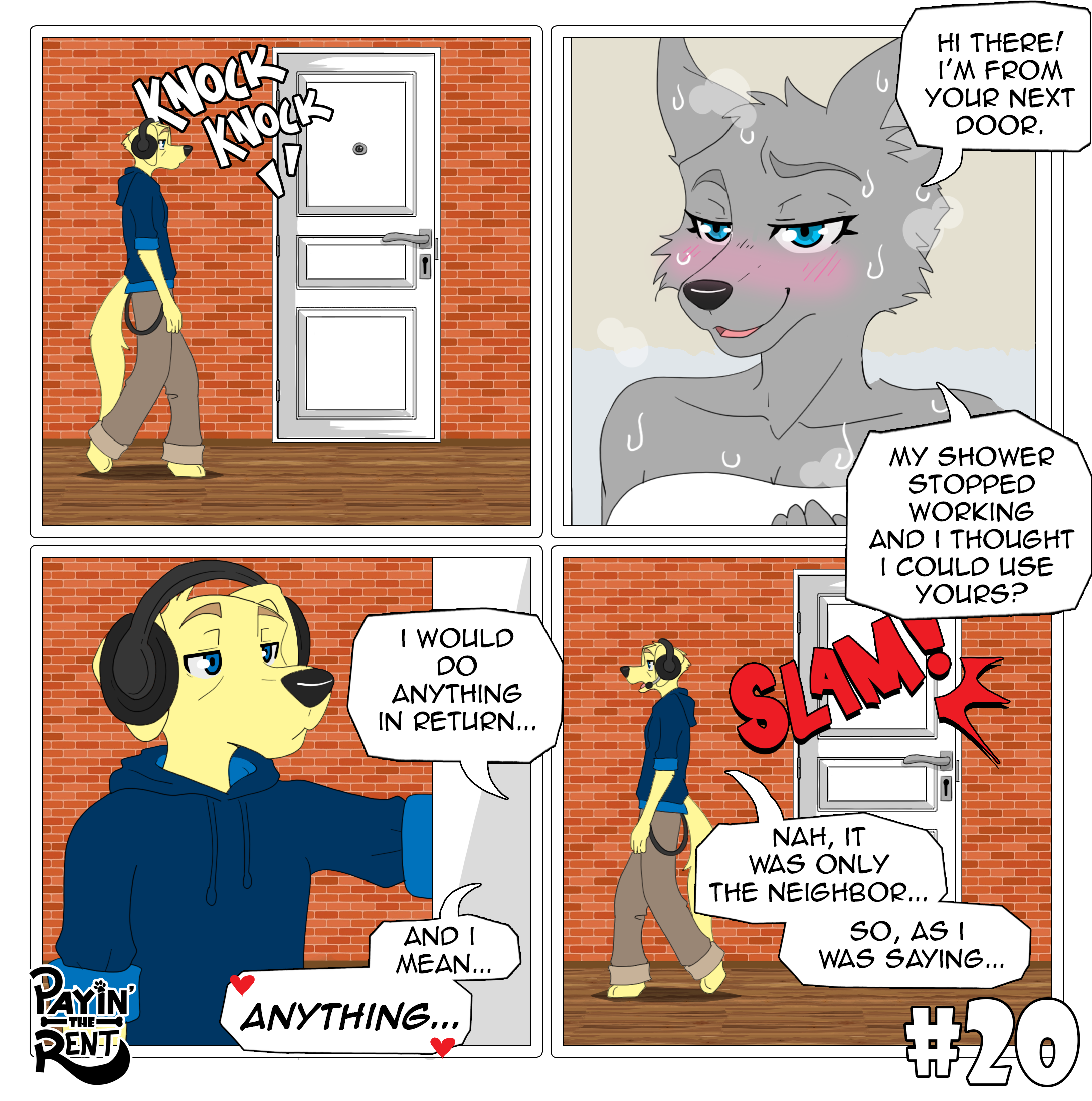Payin’ the Rent is a slice-of-life comedy comic following the chaotic misadventures of Roger, a foul-mouthed, laid-back fennec fox, and Ben, his nerdy, optimistic Labrador roommate. The two live together in a cramped apartment where every day spirals into ridiculous situations.