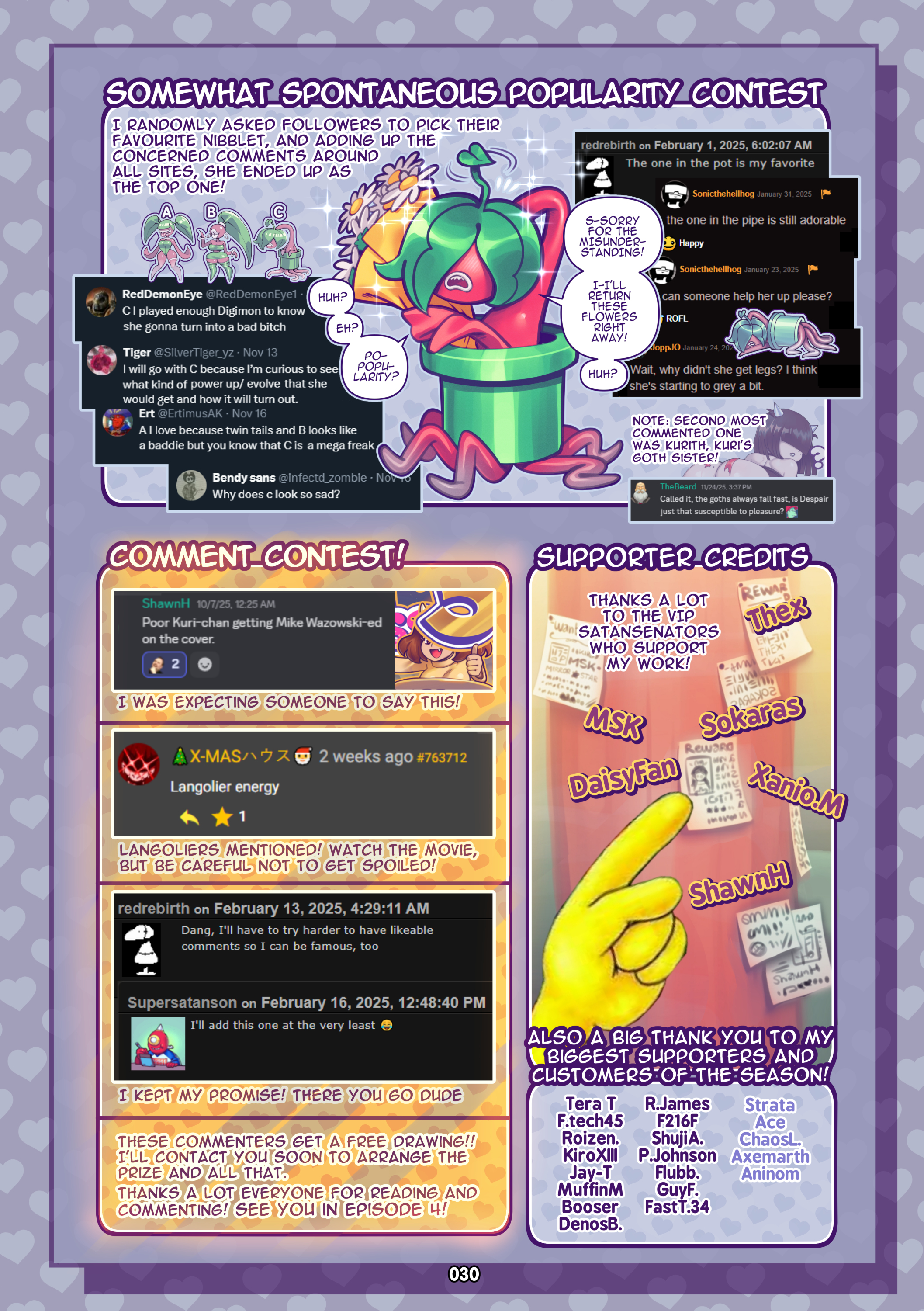 Finally, the closing pages for the whole thing! A bit late, but here nonetheless! Congrats to the winning comments, definitely doing the same for next episode too. Can't wait to start with Episode 4, It's all pretty fun so I hope you have fun with these Baddies too. I think I covered all I had to say in these extra pages, so hope you give them a read. Cheers! 🥂