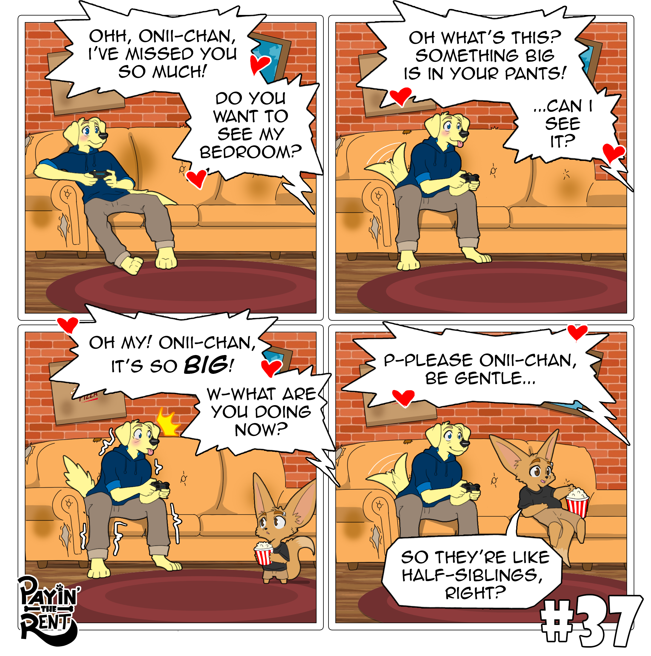 Payin’ the Rent is a slice-of-life comedy comic following the chaotic misadventures of Roger, a foul-mouthed, laid-back fennec fox, and Ben, his nerdy, optimistic Labrador roommate. The two live together in a cramped apartment where every day spirals into ridiculous situations.