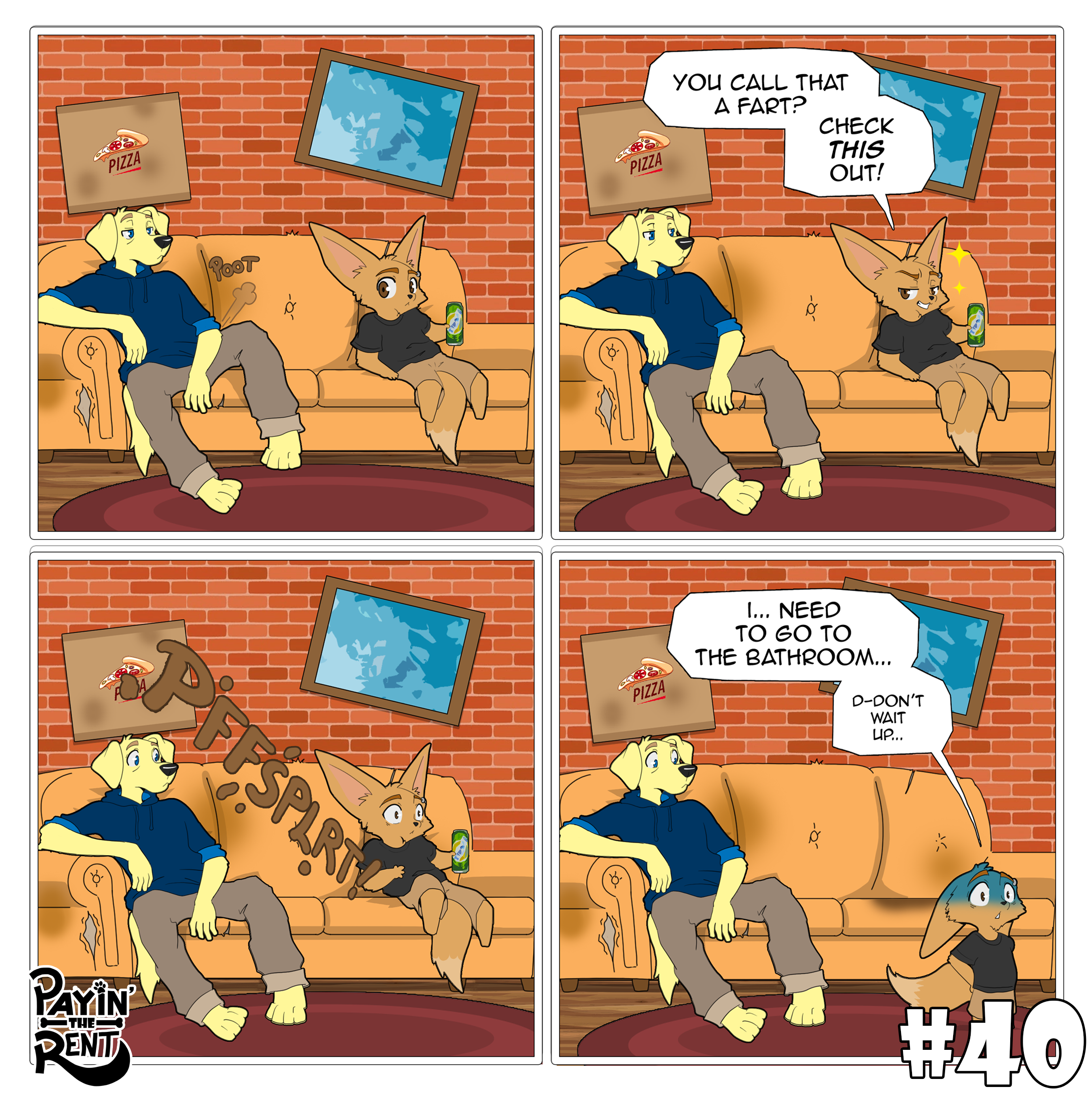 Payin’ the Rent is a slice-of-life comedy comic following the chaotic misadventures of Roger, a foul-mouthed, laid-back fennec fox, and Ben, his nerdy, optimistic Labrador roommate. The two live together in a cramped apartment where every day spirals into ridiculous situations.
