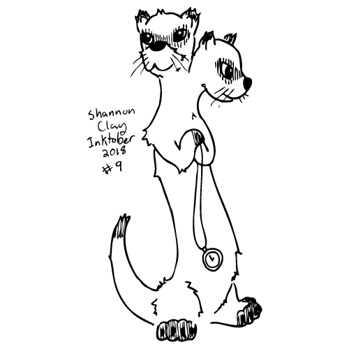 Inktober 2018 #9:The doubleferret casts severe doubt on the old saying that two heads are better than one.