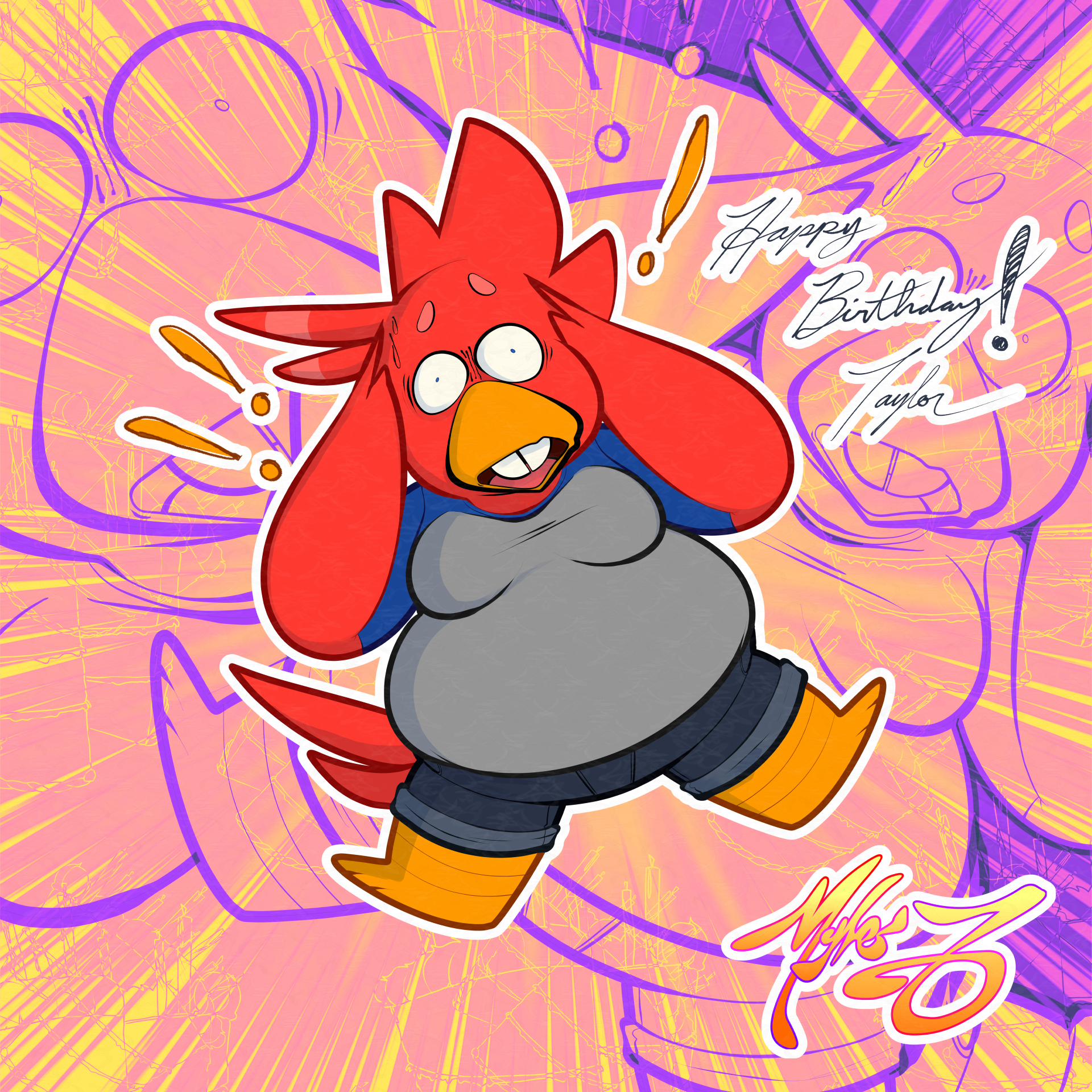 Some birthday gift art for my friend, @potato_power42 and drew his character, Arial!Fun fact: the cakes in the background are a bit of a joke on how many birthdays there are this month, too many birthdays. So many cakes.