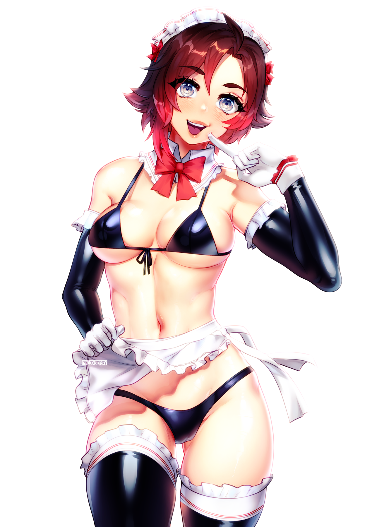 All the bikini maid pin-ups of the main RWBY girls.