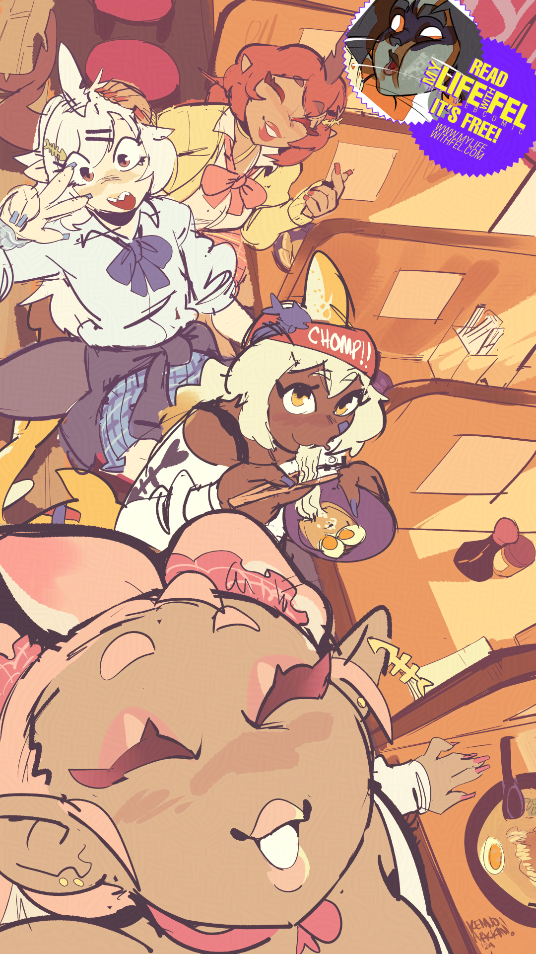 Here's a sketchcomm for pomutop feat her catshark ocs and friends japanmaxxing, as you do.